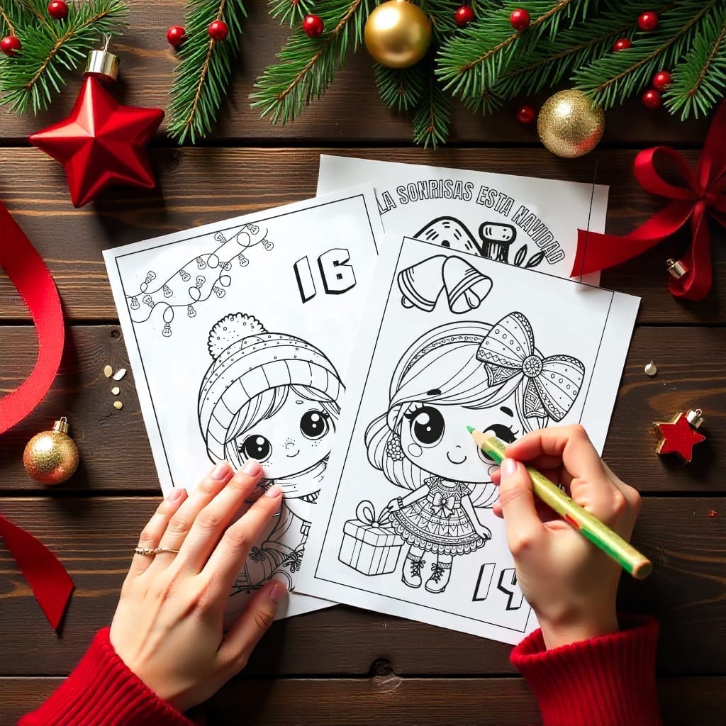 25 diseños navideños en A4 para colorear + portada y contraportada a full color.