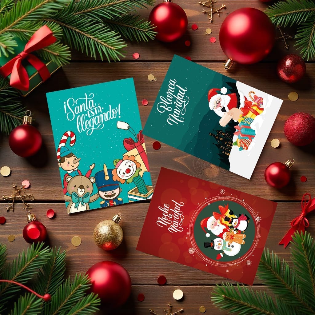 Diseños variados: clásicos, modernos, vintage y en acuarela. Ideales para regalar, decorar o vender en tu emprendimiento navideño.